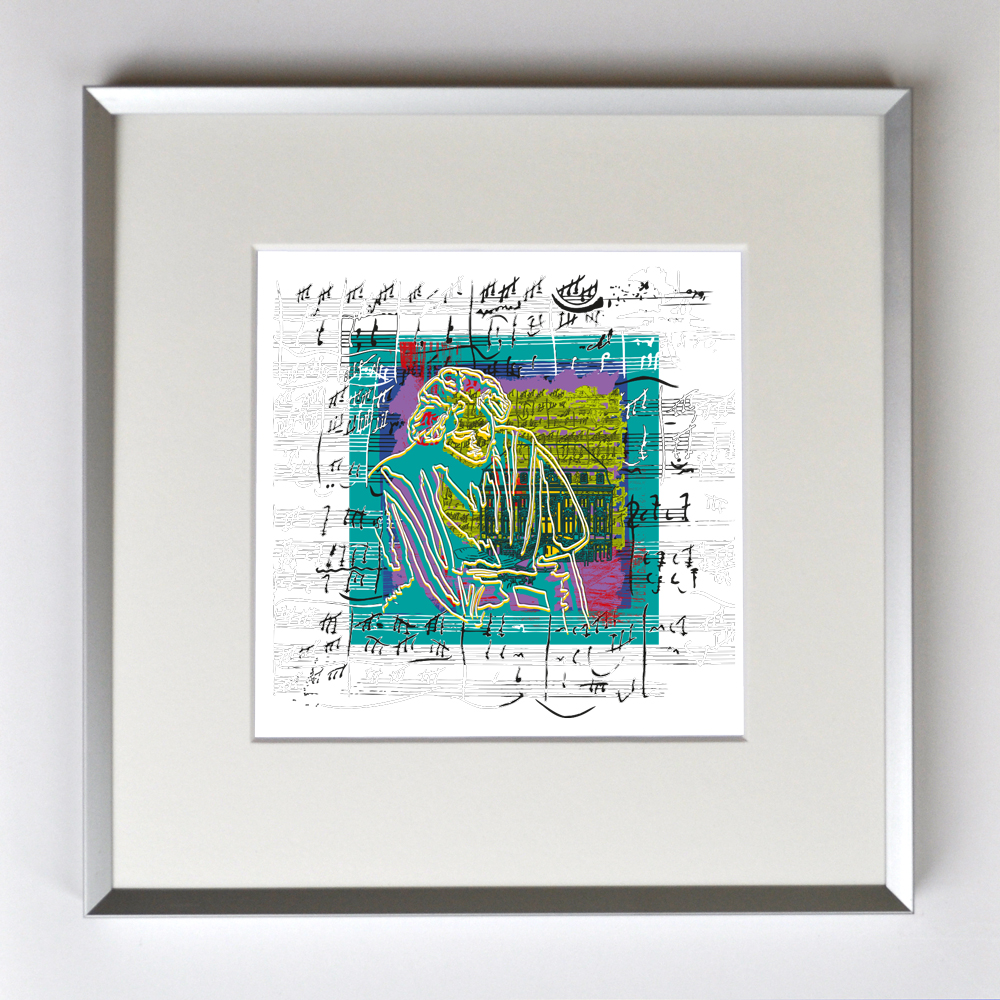 Beethoven Impressionen, gerahmt mit Passepartout, Bildmaß 14 x 14 cm, Rahmenmaß 22 x 22 cm, € 25,00
