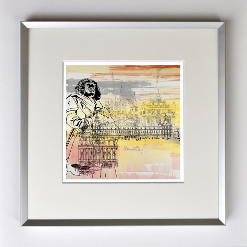 Beethoven Impressionen, gerahmt mit Passepartout, Bildmaß 14 x 14 cm, Rahmenmaß 22 x 22 cm,€ 25.00