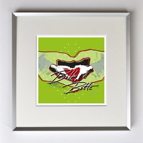 Bitte, bitte gerahmt mit Passepartout, Bildmaß 14 x 14 cm, Rahmenmaß 22 x 22 cm,€ 25,00