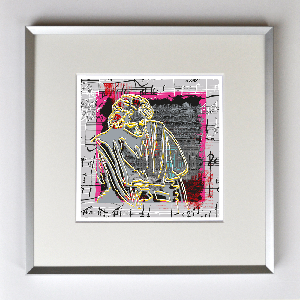 Beethoven Impressionen, gerahmt mit Passepartout, Bildmaß 14 x 14 cm, Rahmenmaß 22 x 22 cm, € 25,00