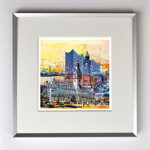 Hamburger Impressionen,Elbphilharmonie, Rathaus, Hafen, gerahmt mit Passepartout, Bildmaß 14 x 14 cm, Rahmenmaß 22 x 22 cm, € 25,00