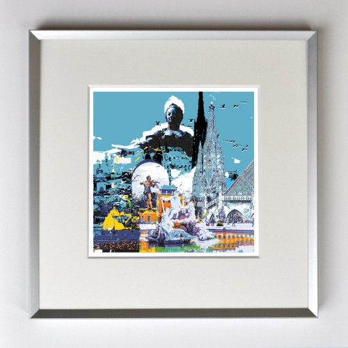 Wiener Impressionen, gerahmt mit Passepartout, Bildmaß 14 x 14 cm, Rahmenmaß 22 x 22 cm, € 25,00