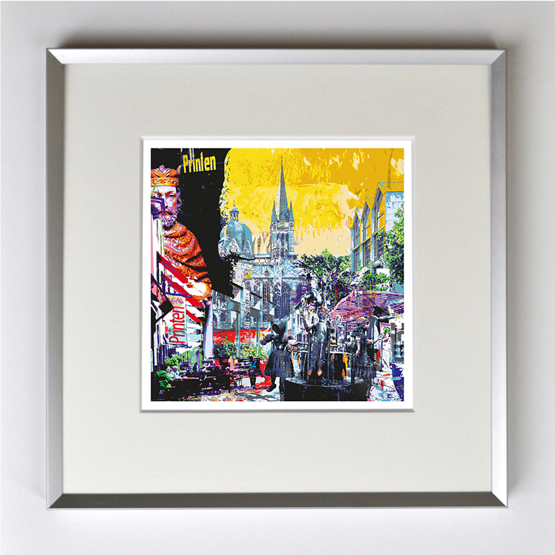 Düsseldorfer Impressionen, gerahmt mit Passepartout, Bildmaß 14 x 14 cm, Rahmenmaß 22 x 22 cm, € 25,00