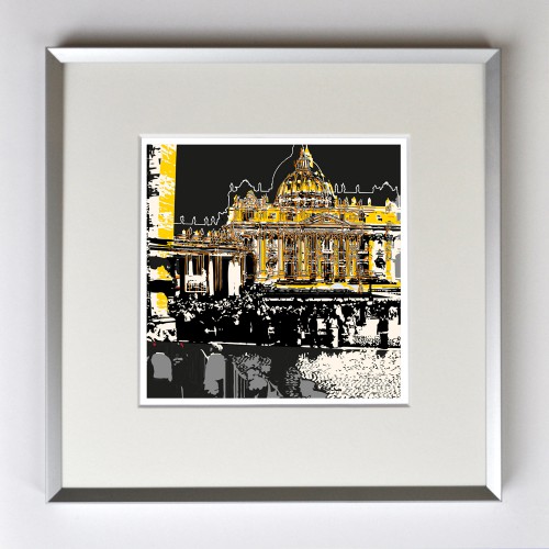 Petersdom, Rom, gerahmt mit Passepartout, Bildmaß 14 x 14 cm, Rahmenmaß 22 x 22 cm, € 25,00