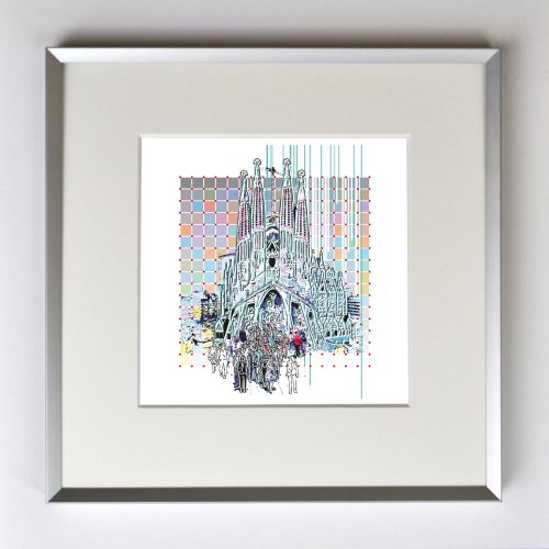 Sagrada Familia, gerahmt mit Passepartout, Bildmaß 14 x 14 cm, Rahmenmaß 22 x 22 cm, € 25,00