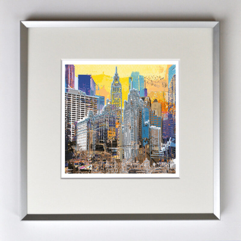 Chicago, gerahmt mit Passepartout, Bildmaß 14 x 14 cm, Rahmenmaß 22 x 22 cm, € 25,00