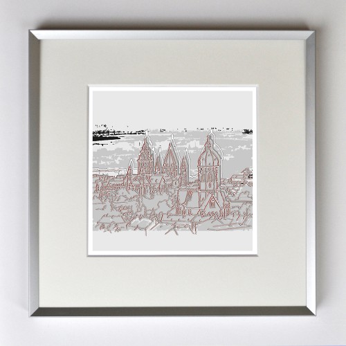 Mainzer Impressionen, gerahmt mit Passepartout, Bildmaß 14 x 14 cm, Rahmenmaß 22 x 22 cm, € 25,00