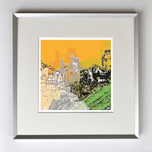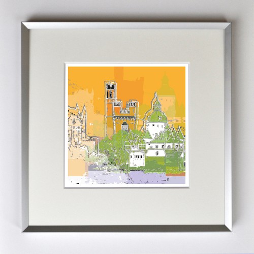 Burgen am Rhein, gerahmt mit Passepartout, Bildmaß 14 x 14 cm, Rahmenmaß 22 x 22 cm, € 25,00