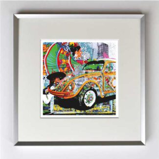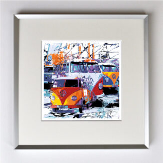 VW Bulli T1, gerahmt mit Passepartout, Bildmaß 14 x 14 cm, Rahmenmaß 22 x 22 cm, € 25,00