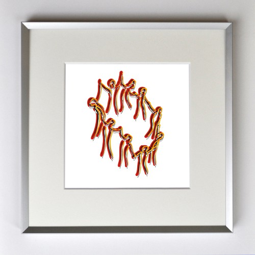 Der Tanz, gerahmt mit Passepartout, Bildmaß 14 x 14 cm, Rahmenmaß 22 x 22 cm, € 25,00
