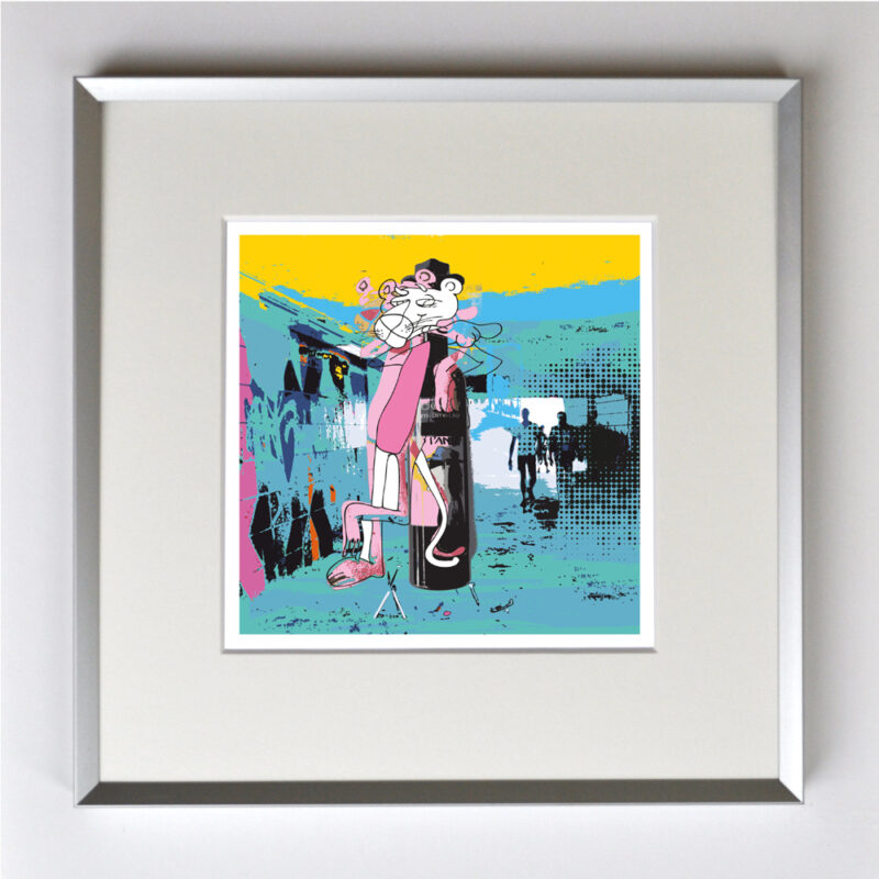 Pink Panther, gerahmt mit Passepartout, Bildmaß 14 x 14 cm, Rahmenmaß 22 x 22 cm, € 25,00