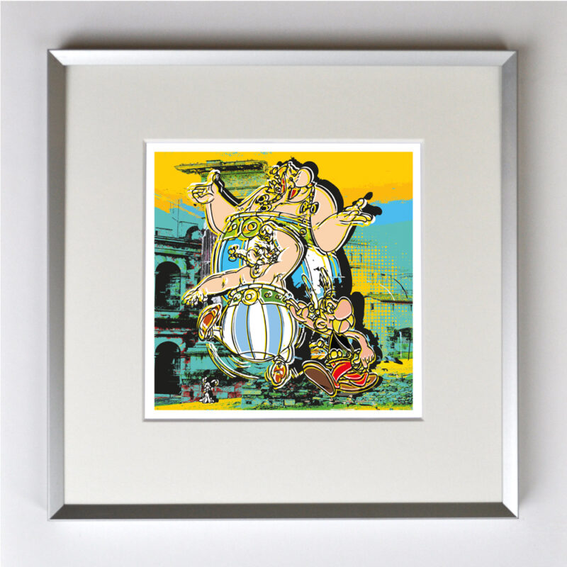Asterix und Obelix, gerahmt mit Passepartout, Bildmaß 14 x 14 cm, Rahmenmaß 22 x 22 cm, € 25,00