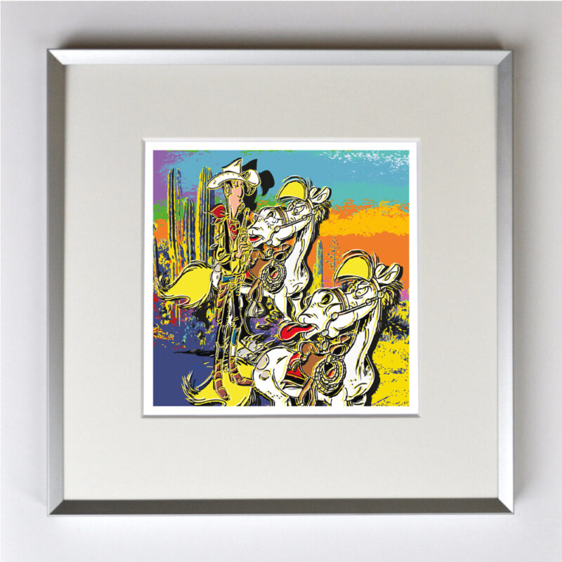 Luky Luke, gerahmt mit Passepartout, Bildmaß 14 x 14 cm, Rahmenmaß 22 x 22 cm, € 25,00