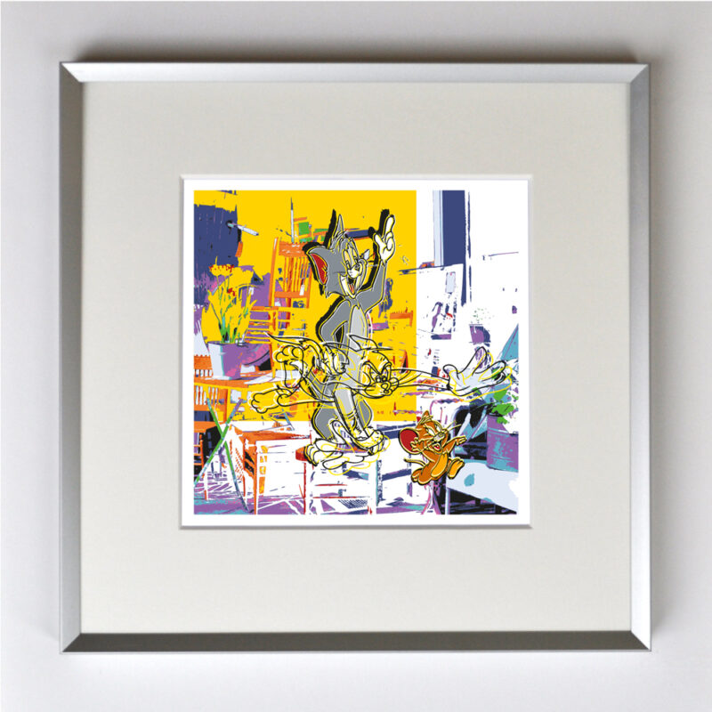 Tom und Jerry, gerahmt mit Passepartout, Bildmaß 14 x 14 cm, Rahmenmaß 22 x 22 cm, € 25,00