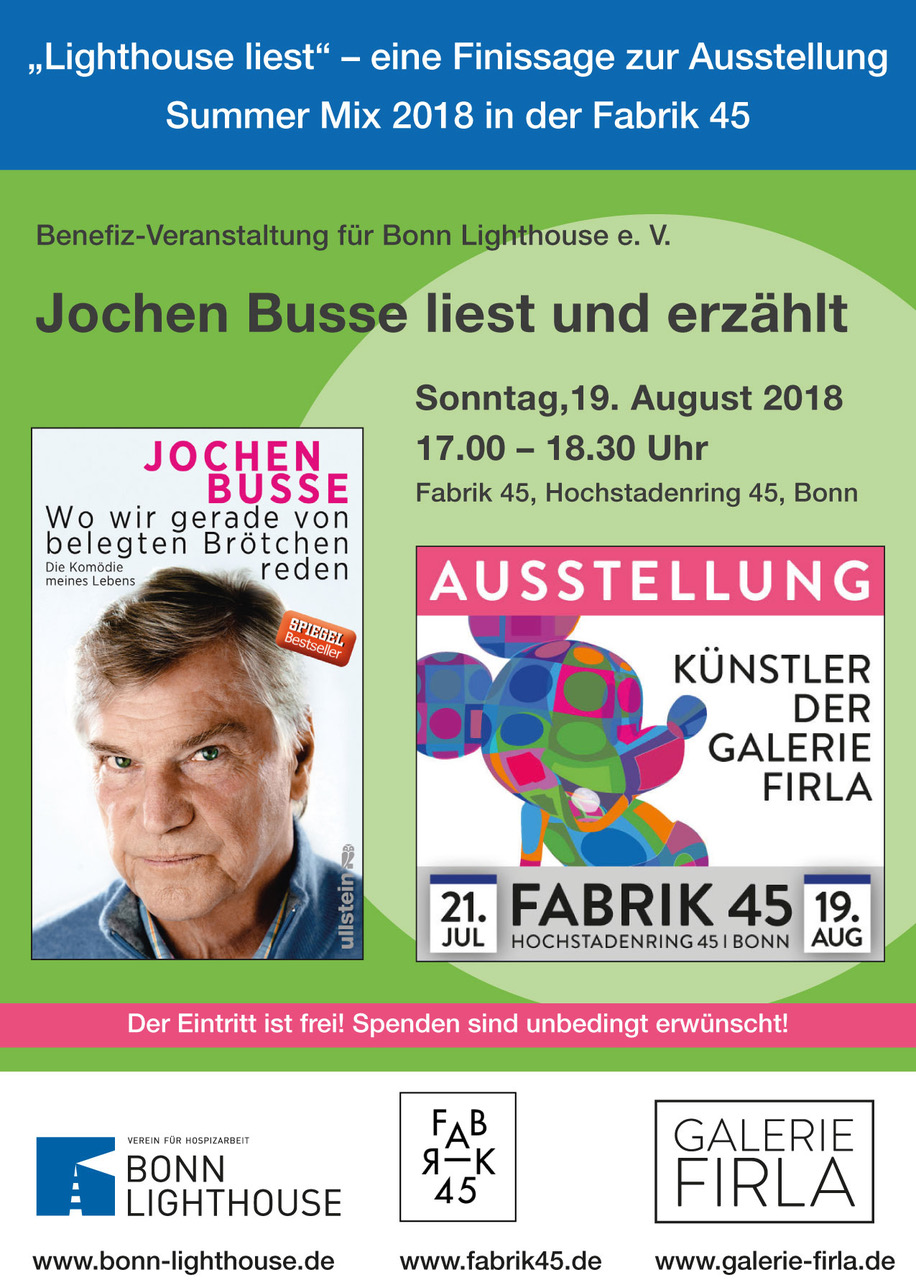 Finissage der Sommerausstellung der Galerie Firla mit einer Lesung von Busse zu Gunsten Lighthouse e.V. Bonn