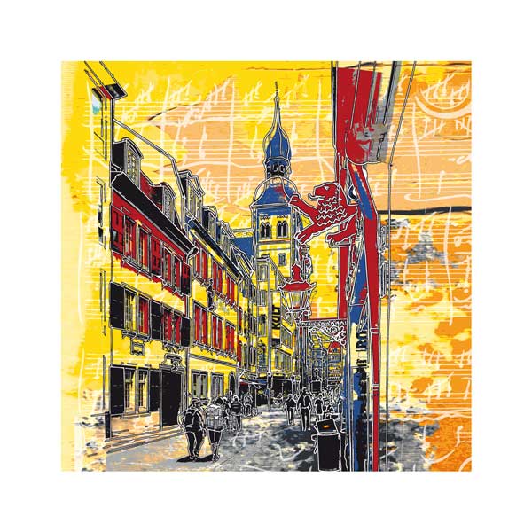 Beethoven Impressionen, Bonngasse mit Beethovenhaus, Grafik, nummeriert und handsigniert, 70 x 70 cm, Auflage 30 + E. A. und 40 x 40 cm, Auflage 120 + E. A., Bild Nr. 19_105