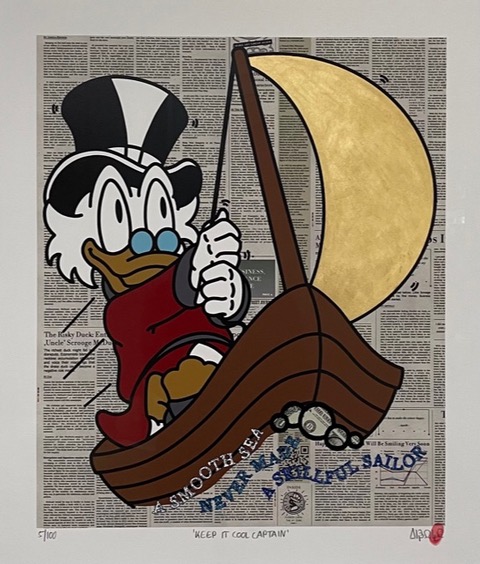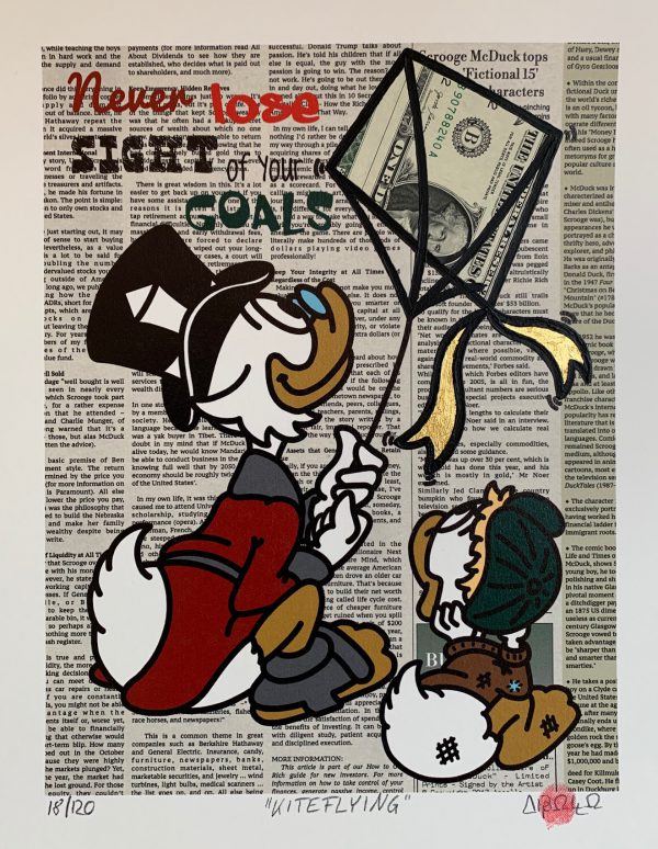 Original-Grafik mit echten Dollarnoten und 24 Karat Blattgold, Kiteflying