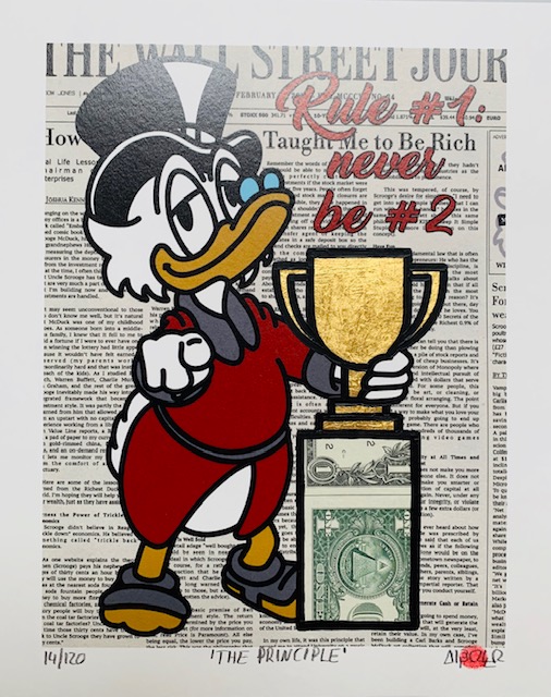 Original-Grafik mit echten Dollarnoten und 24 Karat Blattgold, The Principle
