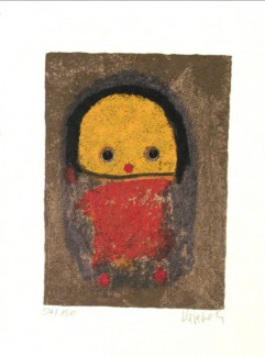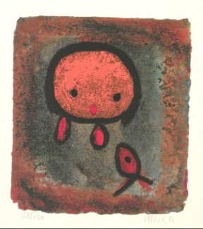 Col pesce rosso / Orig. Farbserigrafie, Ex 28/150, 20,3x22,5 cm