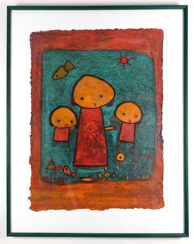 Mutter mit Kindern, Original Siebdruck, nummeriert und handsigniert, 80 x 100 cm, gerahmt, Preis auf Anfrage