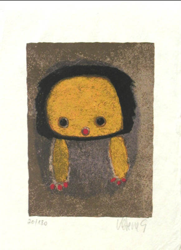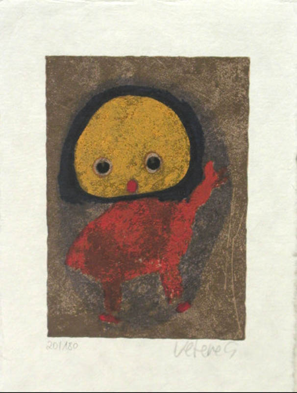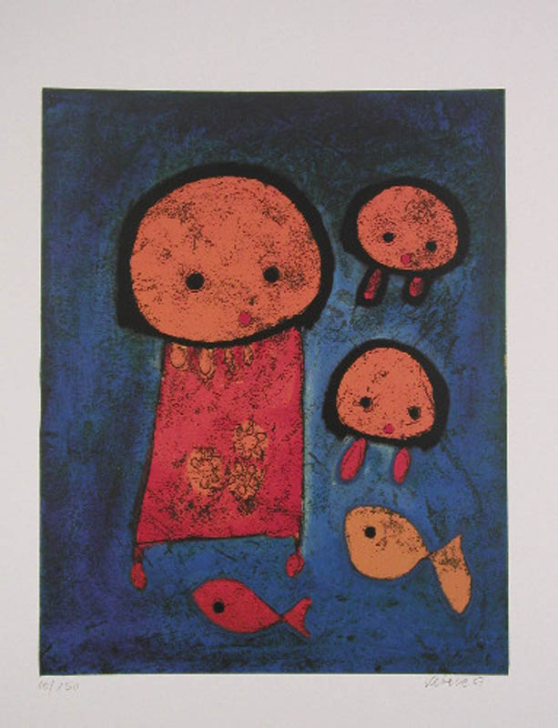 Col pesce rosso / Orig. Farbserigrafie, Ex 28/150, 20,3x22,5 cm