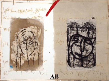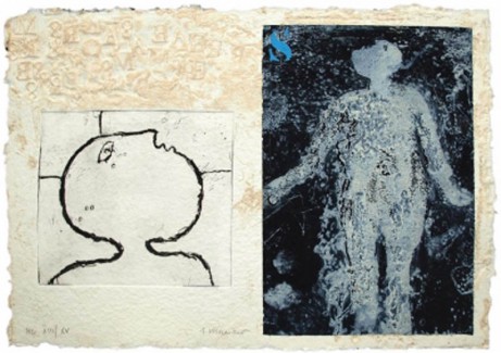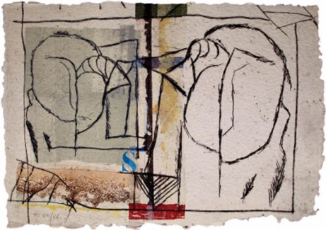 Rencontre aus Passager, Original Caborundum Radierung mit Collage und Handintervention aus dem Album Passager, Auflage 99 Exemplare, nummeriert und handsigniert , Bildgröße 38 x 50 cm, aus dem Jahr 1994, Preis auf Anfrage