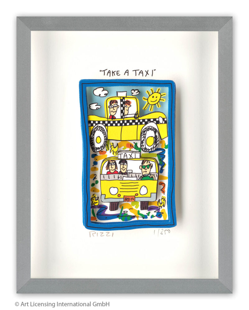Take a Taxi, 3-D Grafik von James Rizzi, 12 x 15 cm, Auflage 350, nummeriert und drucksigniert, Preis auf Anfrage