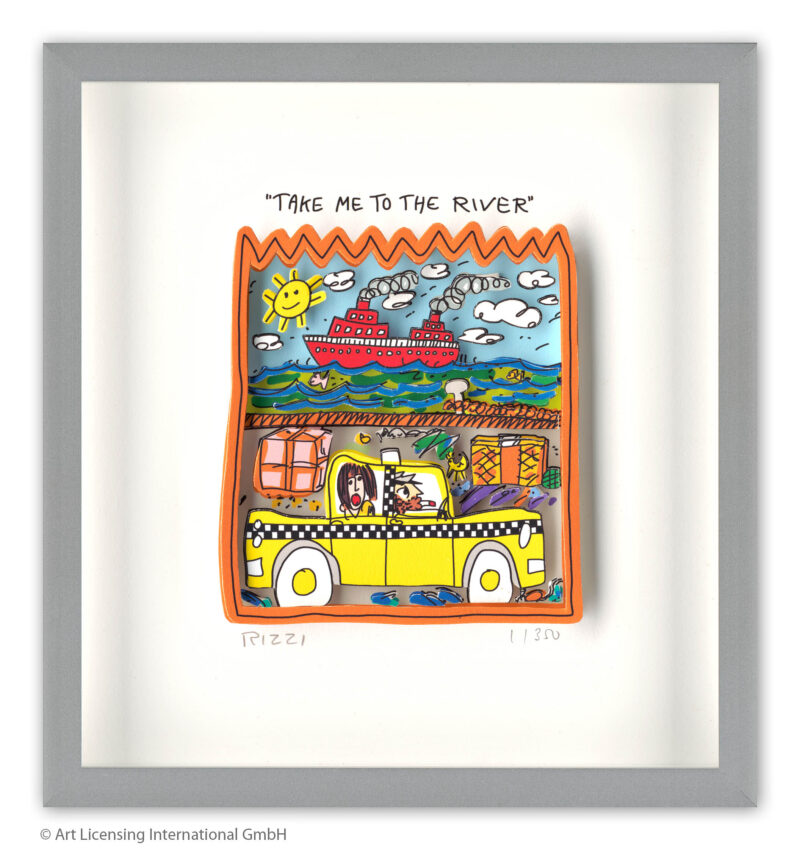 Take me to the River, 3-D Grafik von James Rizzi, 16 x 17 cm, Auflage 350, nummeriert und drucksigniert, Preis auf Anfrage