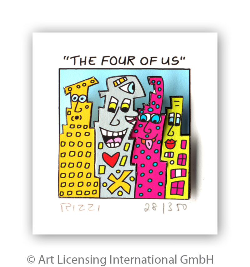 The Four of Us, 3-D Grafik von James Rizzi, 14 x 14 cm, Auflage 350, nummeriert und drucksigniert, Preis auf Anfrage