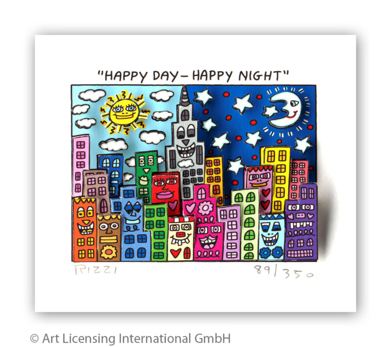 Happy Day - Happy Night, 3-D Grafik von James Rizzi, 20 x 24 cm, Auflage 350, nummeriert und drucksigniert, Preis auf Anfrage