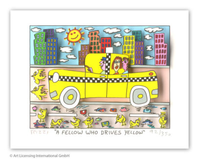 A Fellow, who drives Yellow, 3-D Grafik von James Rizzi, 24 x 30 cm, Auflage 350, nummeriert und drucksigniert, Preis auf Anfrage