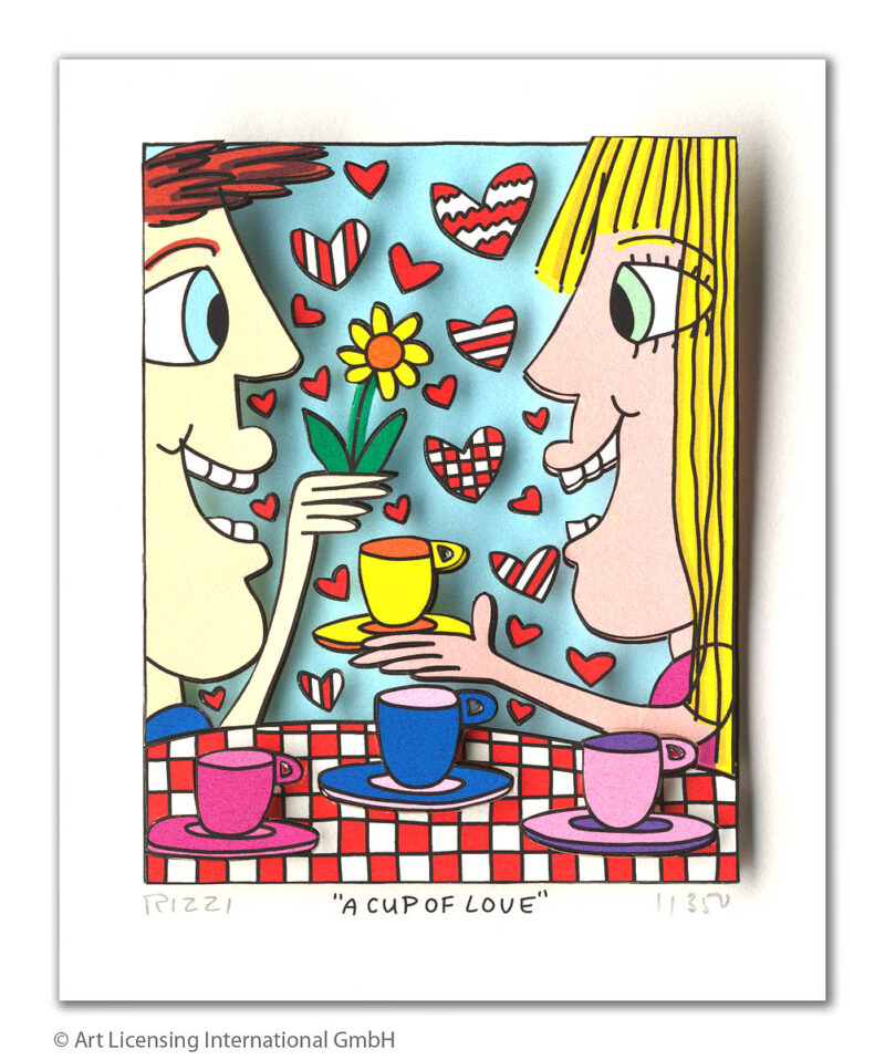 A Cup of Love, 3-D Grafik von James Rizzi, 30 x 40 cm, Auflage 350, nummeriert und drucksigniert, Preis auf Anfrage