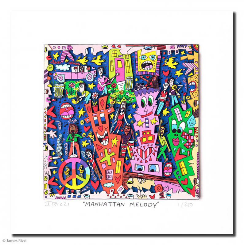 Manhattan Melody von James Rizzi Original 3D-Grafik aus dem Jahr 2013 stempelsigniert und nummeriert mit Echtheits-Hologramm auf der Rückseite Größe 45 x 45 cm, Preis auf Anfrage