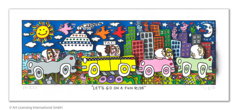 Let's go on a fun ride , 3-D Grafik von James Rizzi, 24 x 40 cm, Auflage 350, nummeriert und drucksigniert, Preis auf Anfrage