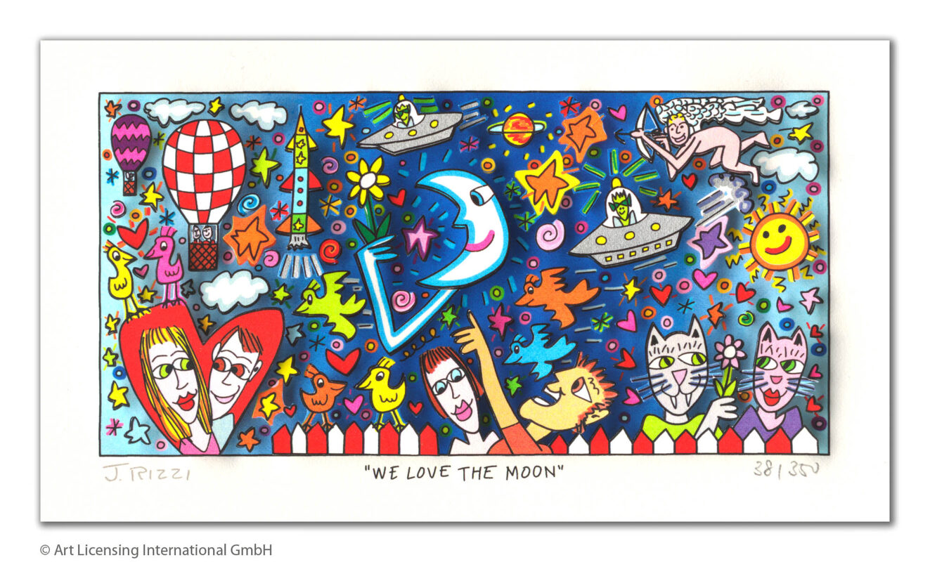 We love the Moon, 3-D Grafik von James Rizzi, 30 x 40 cm, Auflage 350, nummeriert und drucksigniert, Preis auf Anfrage