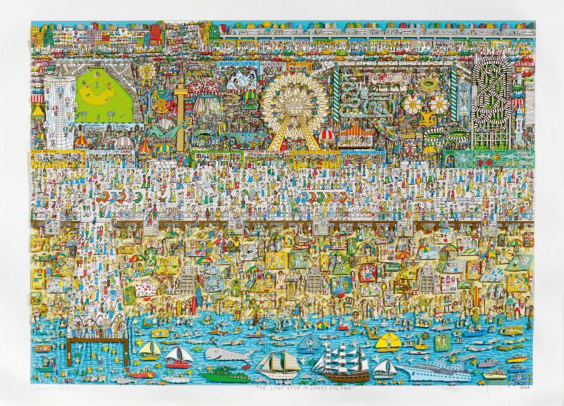 Original 3-D von James Rizzi The last stop is Coney Island, 2002, Auflage 350 Exemplare, nummeriert und handsigniert, letztes Blatt