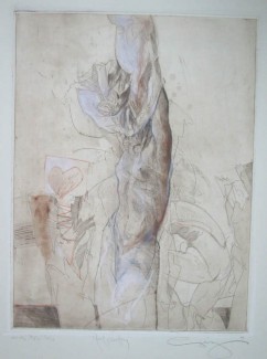 Original Farbradierung aus einer Mappe von 8 Blättern zur Westsidestory. Preis der vollständigen Mappe auf Anfrage. Auflage 100 Exemplare. Format der Einzelblätter Blattmaß 69,5 x 50 cm, Bildmaß 39 x 31,5 cm. Das Impressum der Mappe wurde von Leonard Bernstein und Jürgen Görg handsigniert.