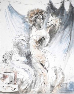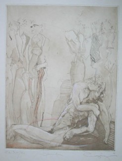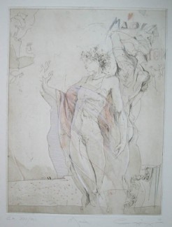 Original Farbradierung aus einer Mappe von 8 Blättern zur Westsidestory. Preis der vollständigen Mappe auf Anfrage. Auflage 100 Exemplare. Format der Einzelblätter Blattmaß 69,5 x 50 cm, Bildmaß 39 x 31,5 cm,