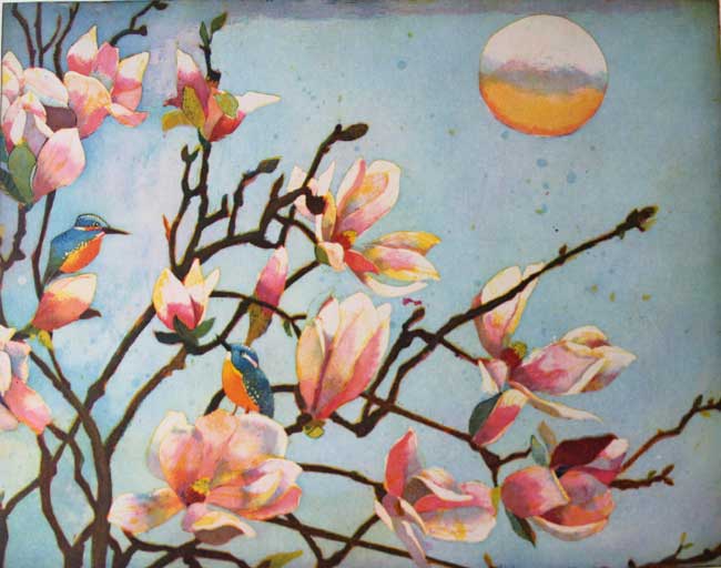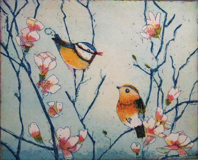 Original Farbradierung, Große Magnolien, nummeriert und handsigniert, Blattgröße 60 x 80 cm, Motivgröße 50 x 64 cm