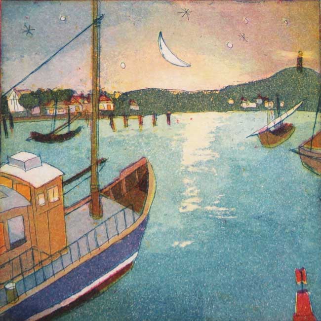 Original Farbradierung, Unterm Abendhimmel, nummeriert und handsigniert, Blattgröße 24 x 30 cm, Motivgröße 13 x 13 cm