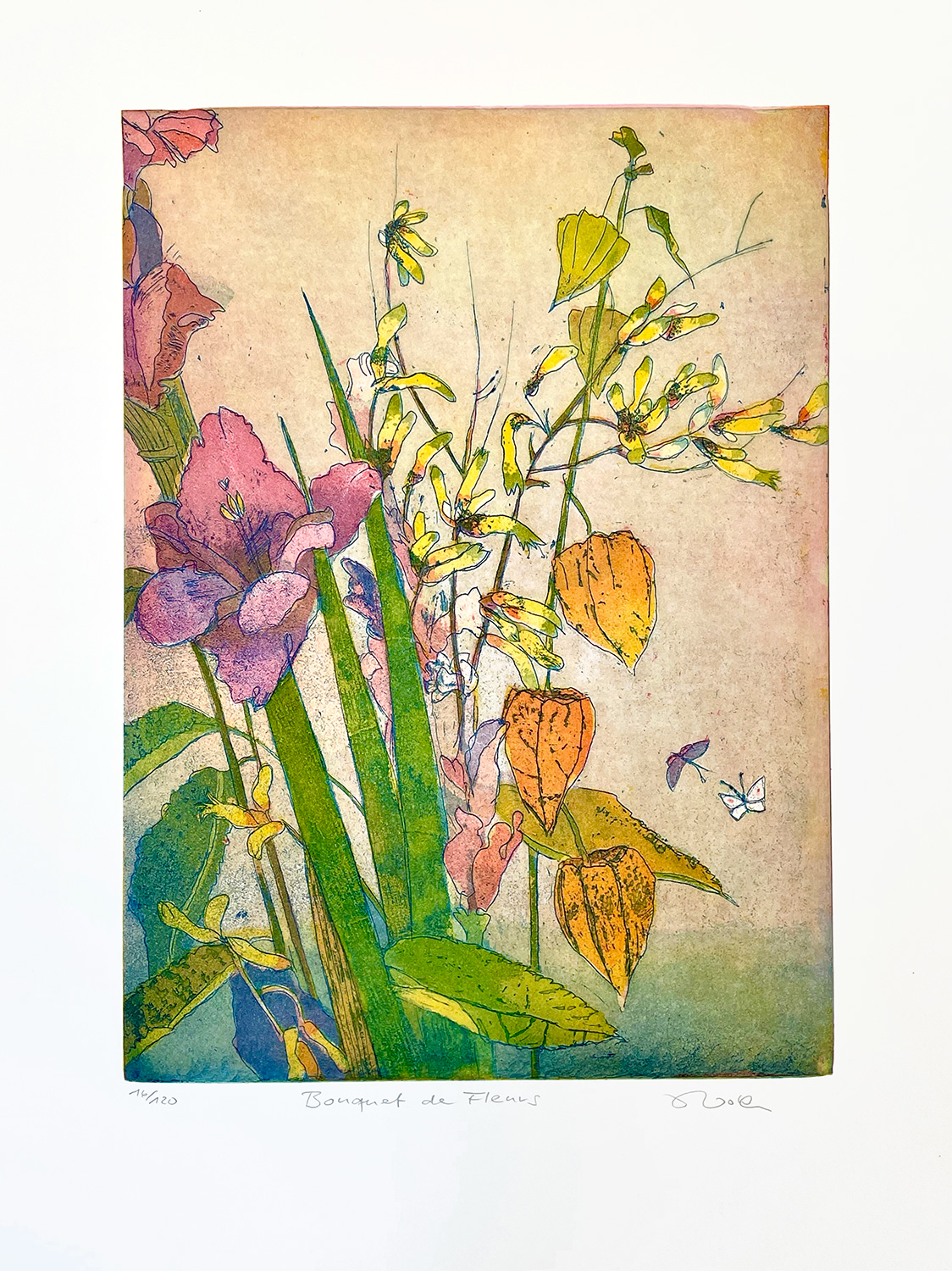 Jutta Votteler, Bouquet de Fleurs, Original Farbradierung, Blattgröße 44 x 55 cm, Motivgröße 27 x 35 cm, Auflage 120 Exemplare, nummeriert und handsigniert