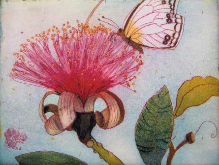 Original Farbradierung, Naschender Schmetterling, nummeriert und handsigniert,Auflage 150 Exemplare, Blattgröße 30 x 40 cm, Motivgröße 15 x 20 cm
