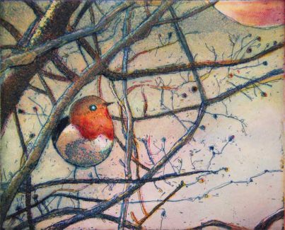 Original Farbradierung, Rotkehlchen, nummeriert und handsigniert, Blattgröße 24 x 30 cm, Motivgröße 12 x 15 cm