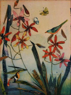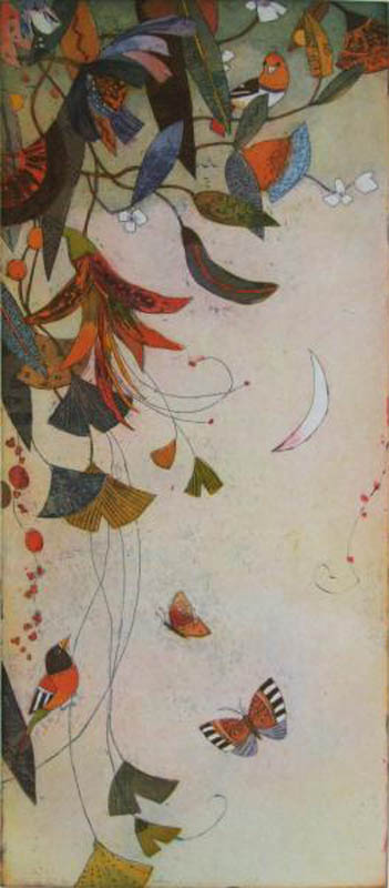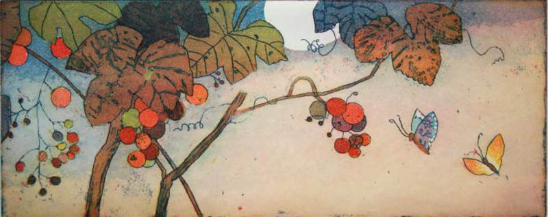 Kleine Traubenbesucher / 2010, Auflage 90, Blattgröße 30x40 cm, Bildgröße 10x20 cm
