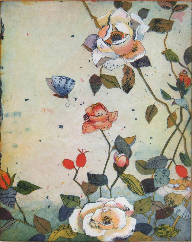Rosenbesuch / 2009, Auflage 120, Blattgröße 60x50 cm, Bildgröße 37x30 cm
