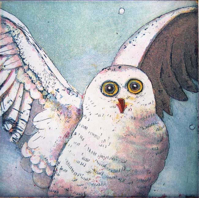Original Farbradierung, Schneeeule, nummeriert und handsigniert, Blattgröße 24 x 30 cm, Motivgröße 14 x 11 cm