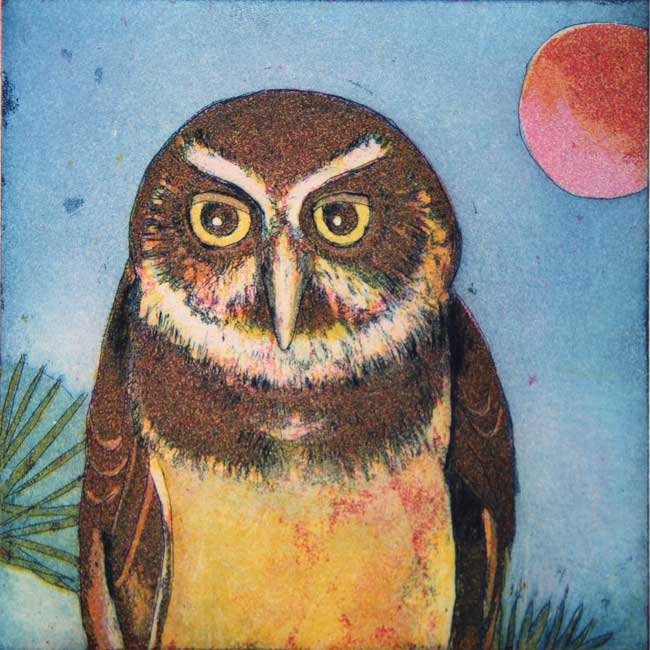 Original Farbradierung, Abendkauz, nummeriert und handsigniert, Blattgröße 24 x 30 cm, Motivgröße 14 x 11 cm