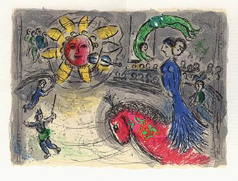 Sonne mit rotem Pferd / Original Farblithografie, Bildgröße 31x42 cm, Mourlot 945, 1979, Derrriere le miroir