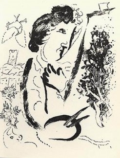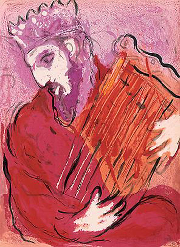 David mit der Harfe / Original Farblithografie, Bildgröße 35x26 cm, 1956, Mourlot 142, Bibel I