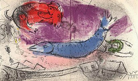 Der blaue Fisch / Original Farblithografie, Bildgröße 23x40 cm, Mourlot 198, 1957, Lassaigne